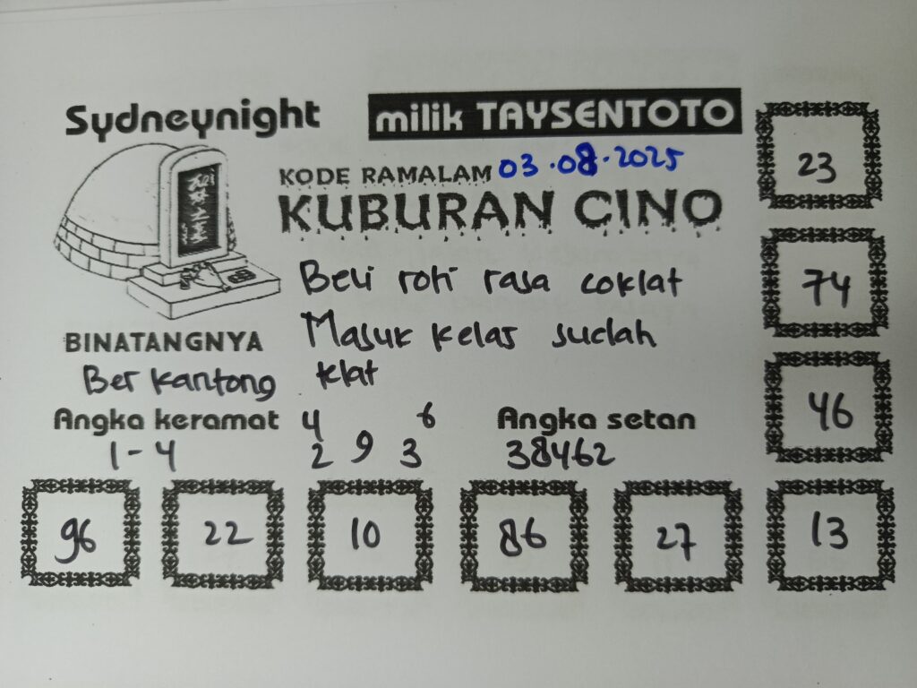 Syair Kuburan Cino SydneyNight Hari ini Minggu, 03 Agustus 2025