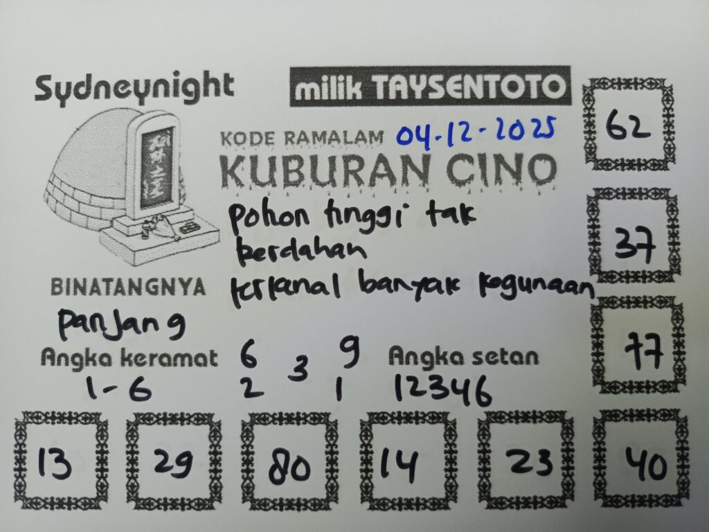 Syair Kuburan Cino SydneyNight Hari ini Kamis, 04 Desember 2025