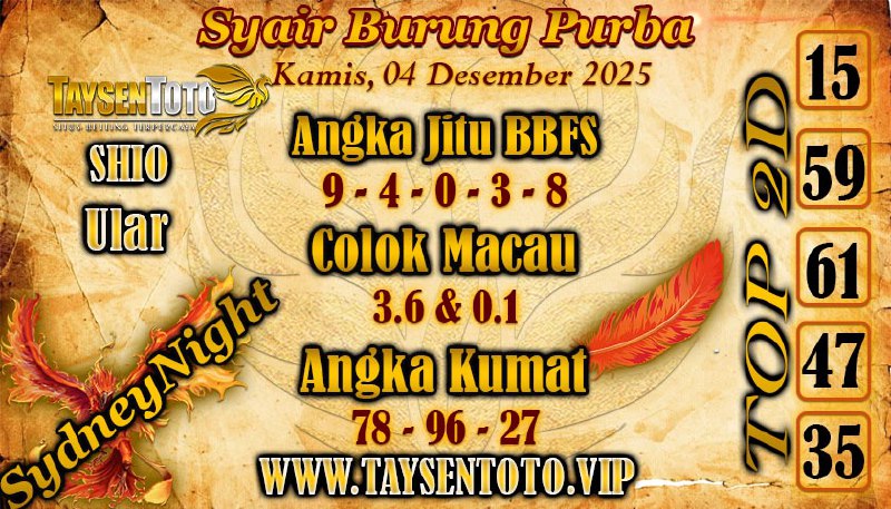 Syair Burung Purba SydneyNight Hari ini Kamis, 04 Desember 2025