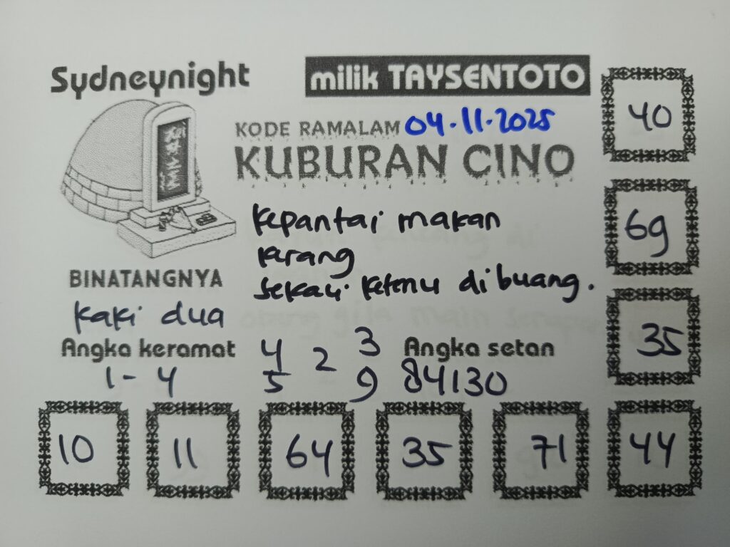 Syair Kuburan Cino SydneyNight Hari ini Selasa, 04 November 2025