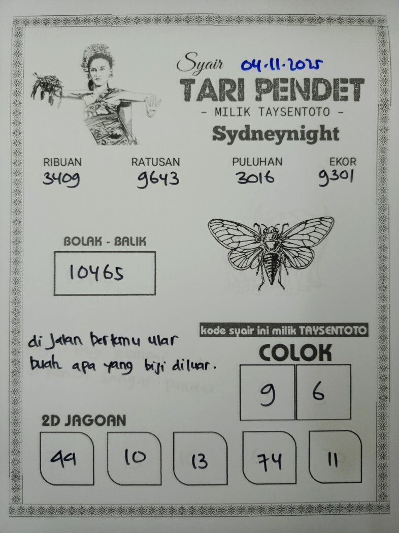 Syair Tari Pendet SydneyNight Hari ini Selasa, 04 November 2025