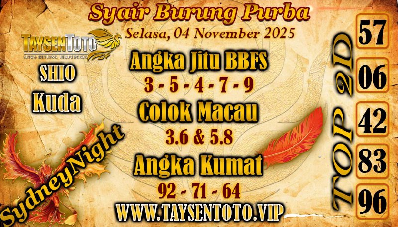 Syair Burung Purba SydneyNight Hari ini Selasa, 04 November 2025