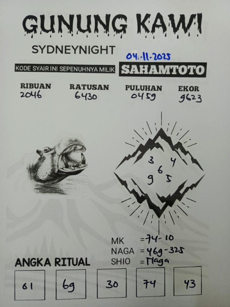 Syair Gunung Kawi SydneyNight Hari ini Selasa 04 November 2025