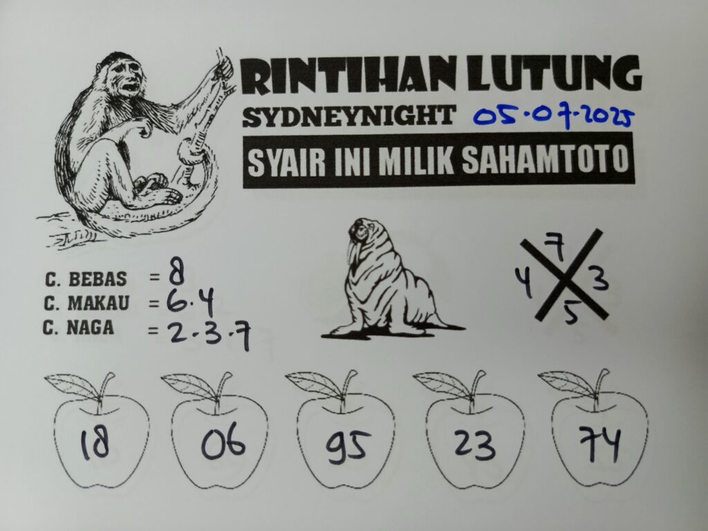 Syair Rintihan Lutung Sydney Night Hari ini Sabtu 05 Juli 2025
