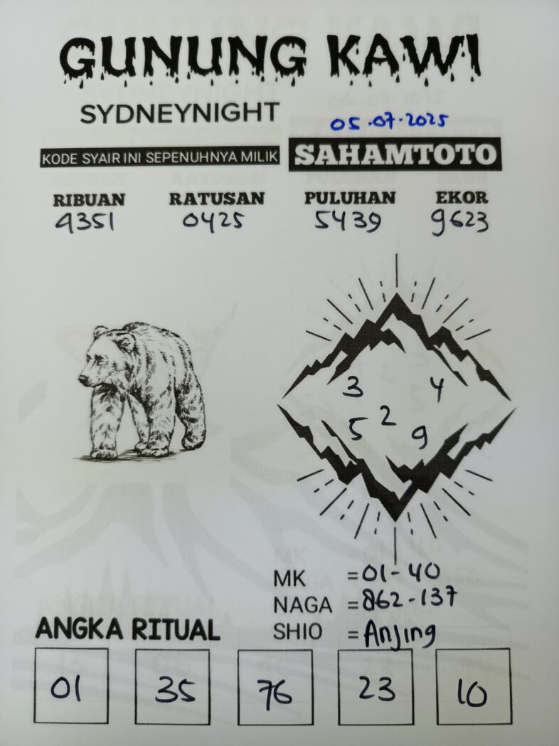 Syair Gunung Kawi Sydney Night Hari ini Sabtu 05 Juli 2025