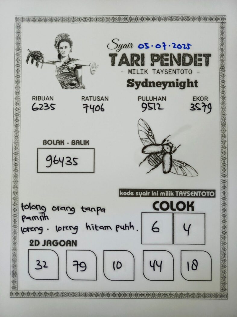 Syair Tari Pendet SydneyNight Hari ini Sabtu, 05 Juli 2025