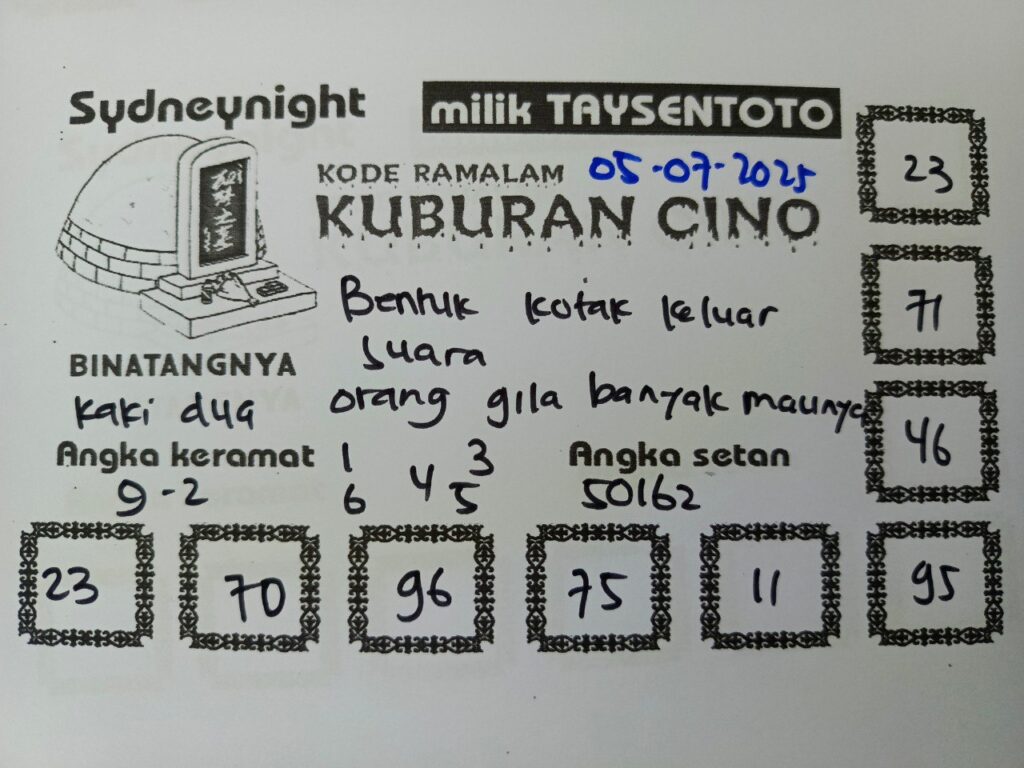Syair Kuburan Cino SydneyNight Hari ini Sabtu, 05 Juli 2025