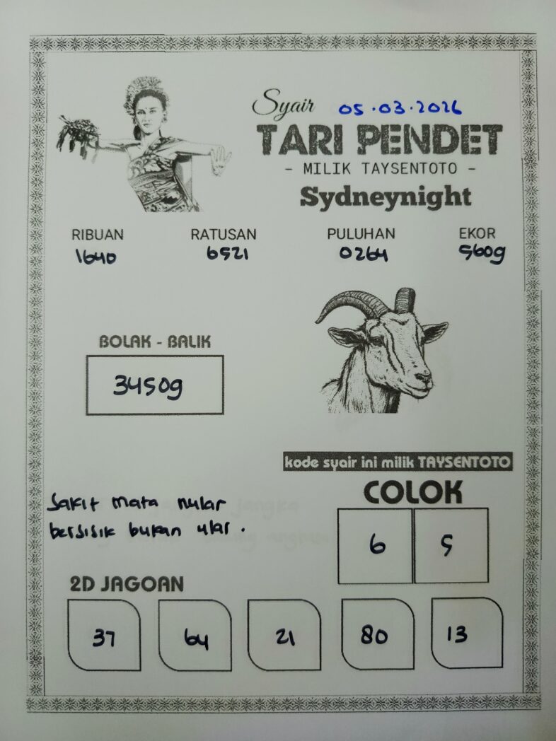 Syair Tari Pendet SydneyNight Hari ini Kamis, 05 Maret 2026
