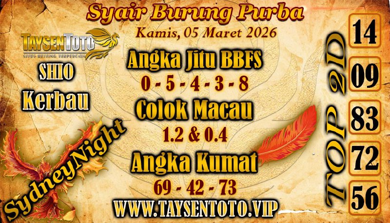 Syair Burung Purba SydneyNight Hari ini Kamis, 05 Maret 2026