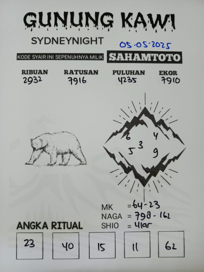 Syair Gunung Kawi SydneyNight Hari ini Senin 05 Mei 2025