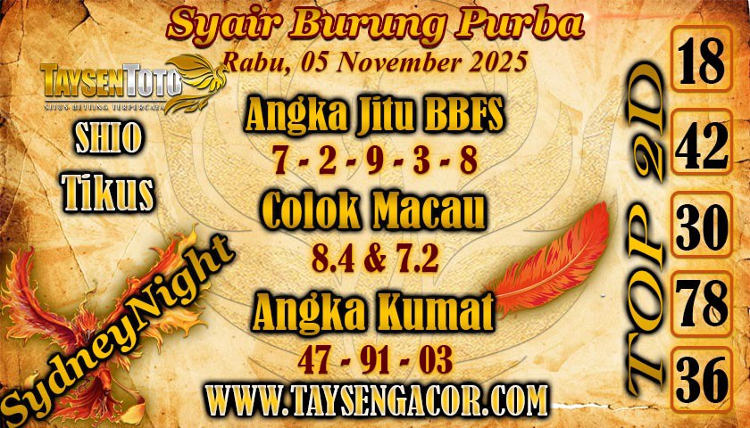 Syair Burung Purba SydneyNight Hari ini Rabu, 05 November 2025