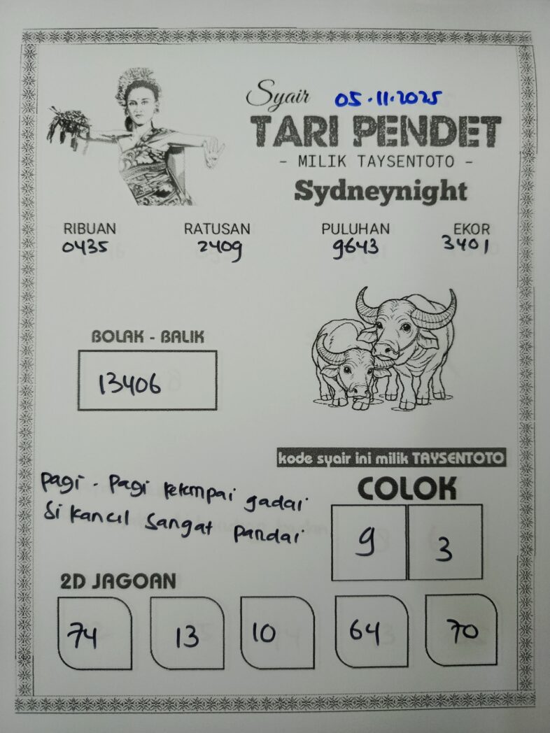 Syair Tari Pendet SydneyNight Hari ini Rabu, 05 November 2025