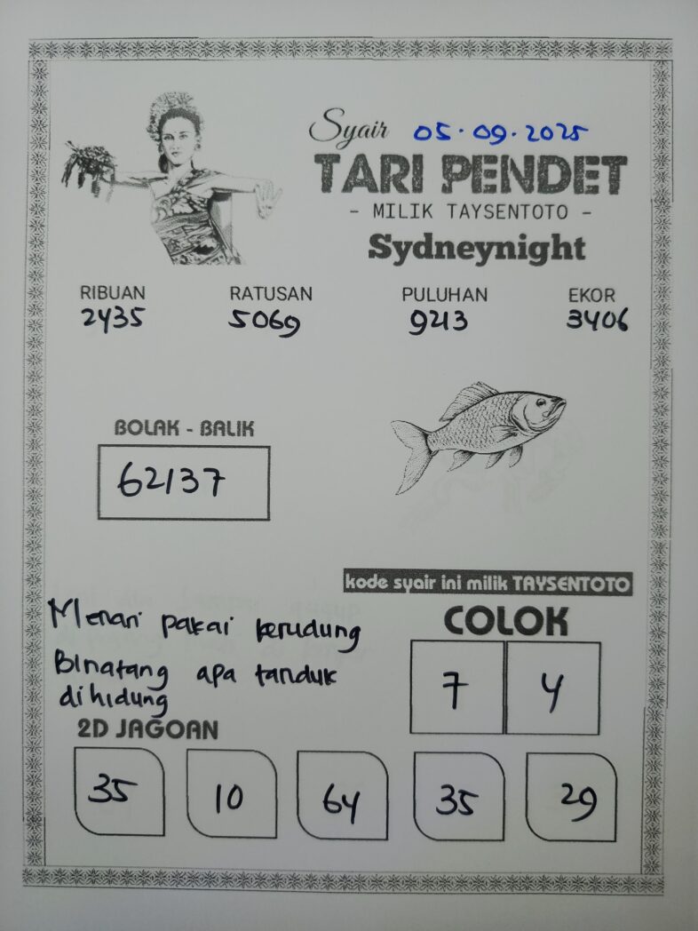 Syair Tari Pendet SydneyNight Hari ini Jumat, 05 September 2025