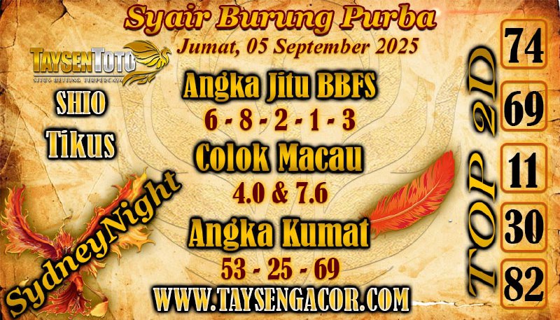Syair Burung Purba SydneyNight Hari ini Jumat, 05 September 2025