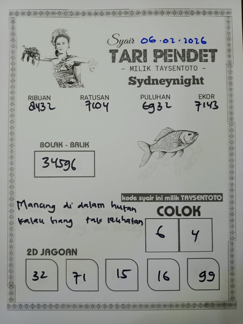 Syair Tari Pendet SydneyNight Hari ini Jumat, 06 Februari 2026