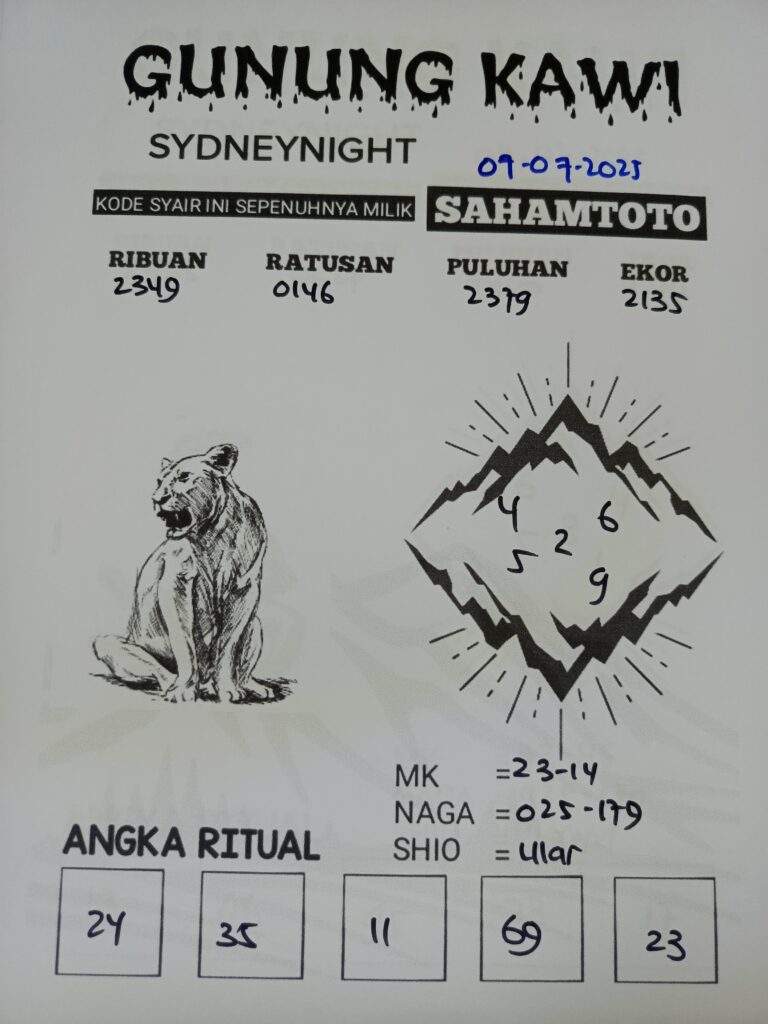 Syair Gunung Kawi Sydney Night Hari ini Senin 07 Juli 2025