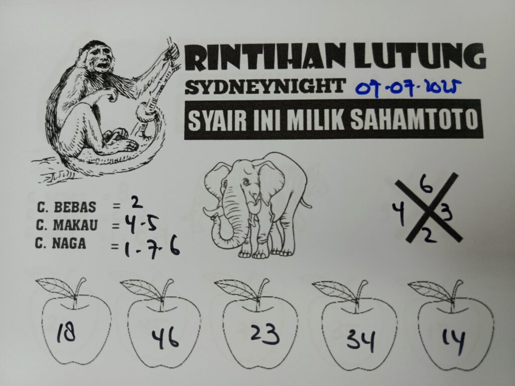 Syair Rintihan Lutung Sydney Night Hari ini Senin 07 Juli 2025