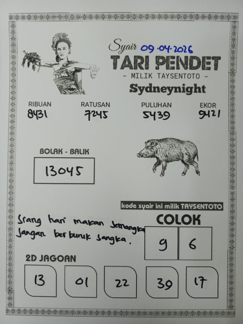 Syair Tari Pendet SydneyNight Hari ini Kamis, 09 April 2026