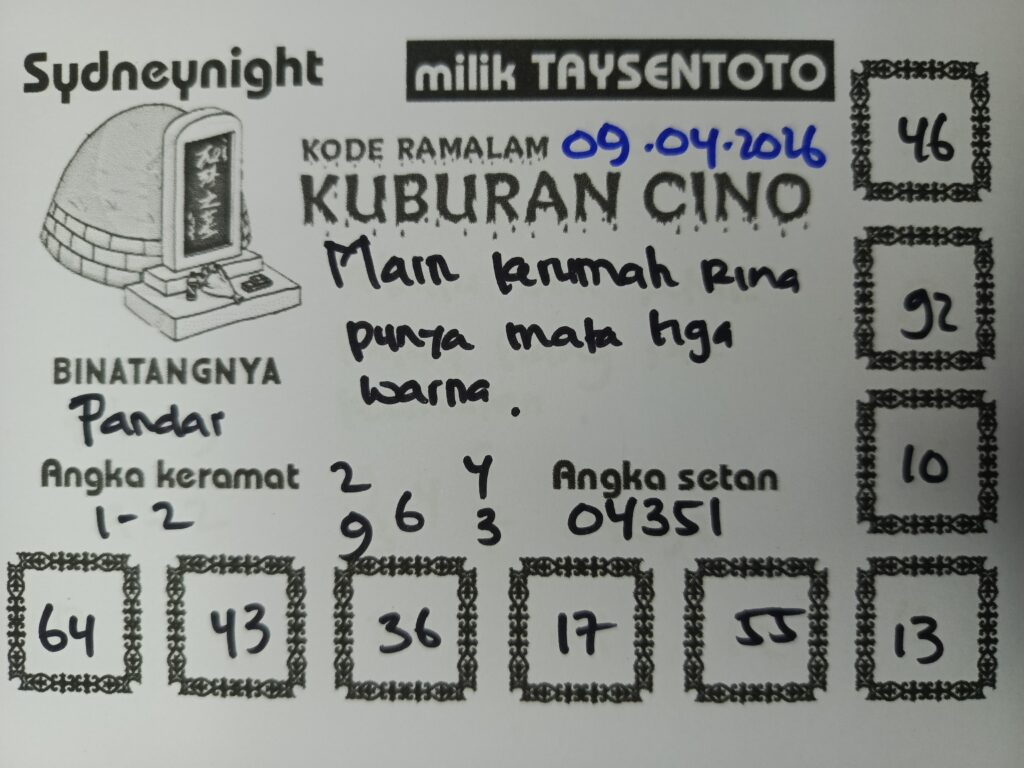 Syair Kuburan Cino SydneyNight Hari ini Kamis, 09 April 2026