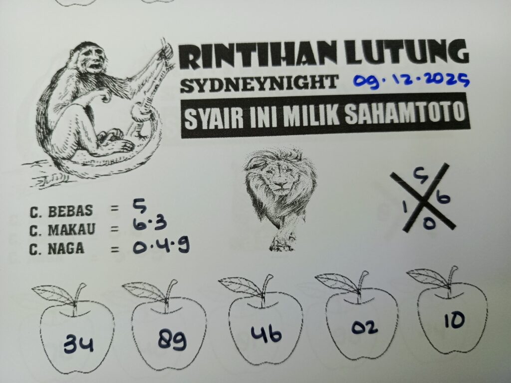 Syair Rintihan Lutung Sydney Night Hari ini Selasa 09 Desember 2025