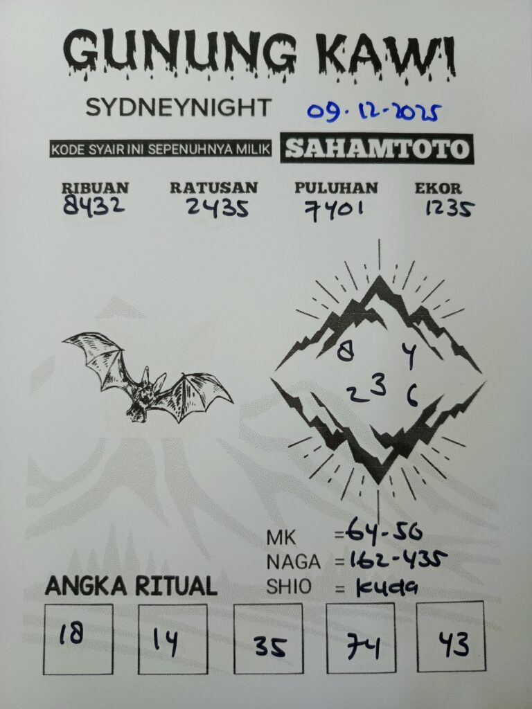 Syair Gunung Kawi Sydney Night Hari ini Selasa 09 Desember 2025