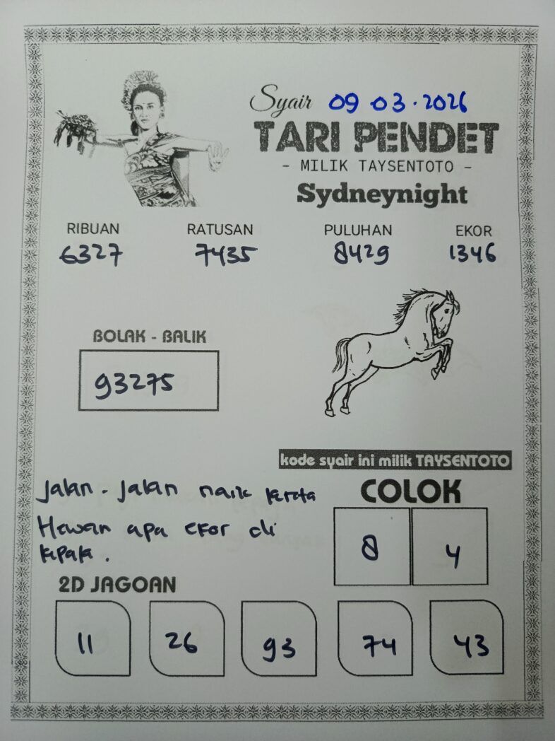 Syair Tari Pendet SydneyNight Hari ini Senin, 09 Maret 2026