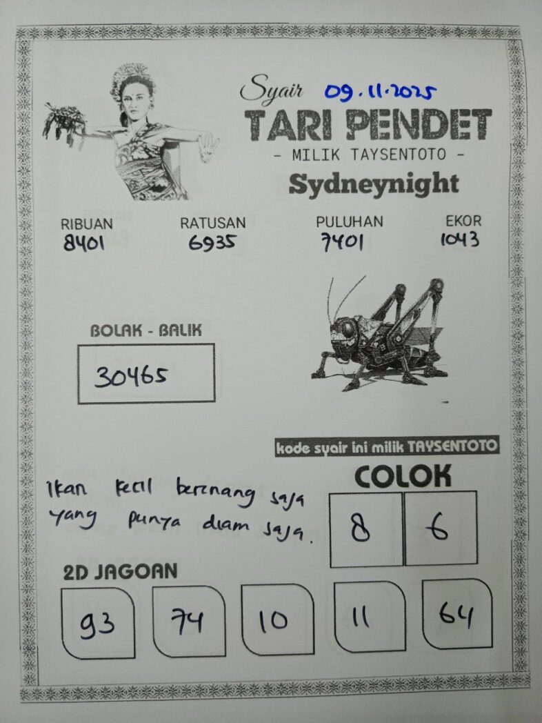 Syair Tari Pendet SydneyNight Hari ini Minggu, 09 November 2025