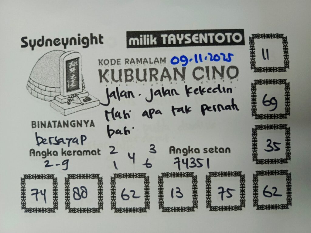 Syair Kuburan Cino SydneyNight Hari ini Minggu, 09 November 2025
