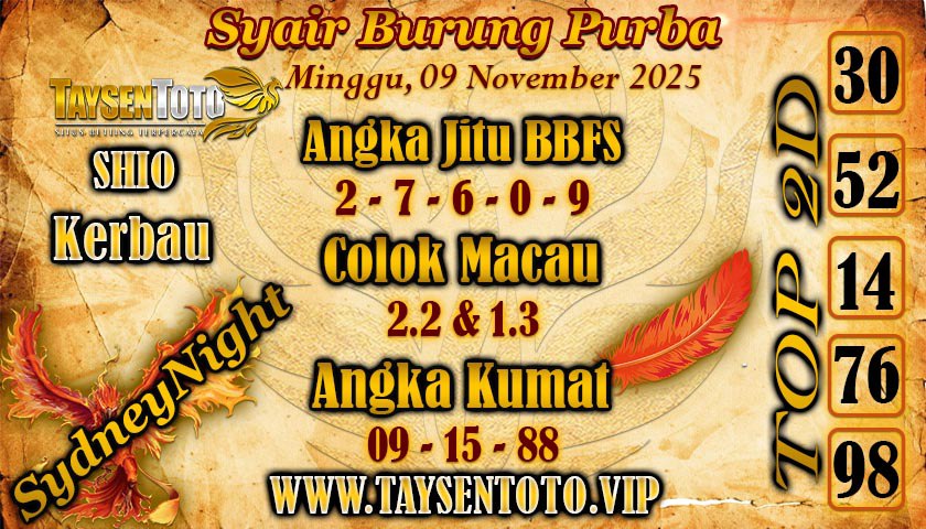 Syair Burung Purba SydneyNight Hari ini Minggu, 09 November 2025