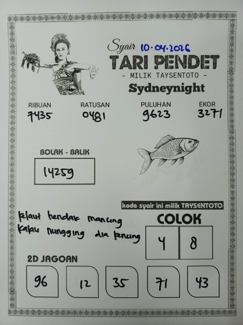 Syair Tari Pendet SydneyNight Hari ini Jumat, 10 April 2026