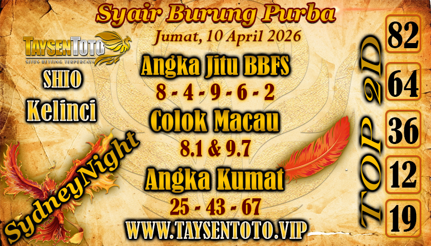 Syair Burung Purba SydneyNight Hari ini Jumat, 10 April 2026
