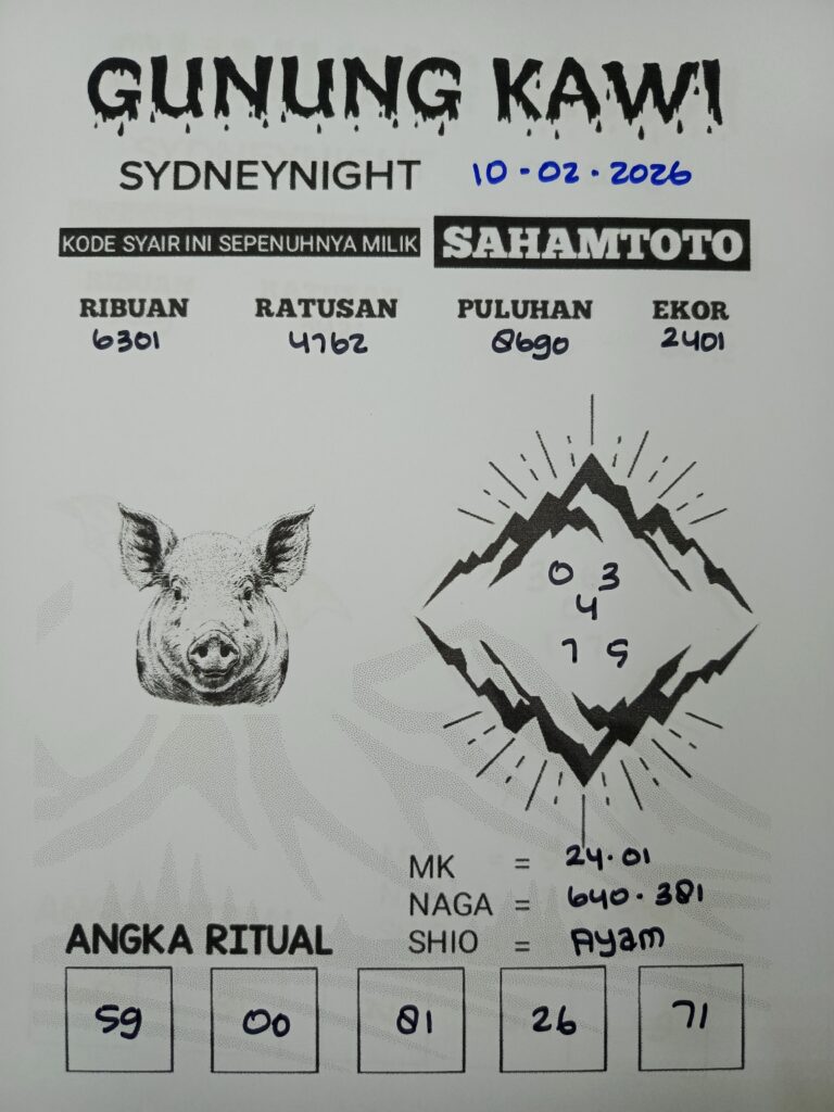 Syair gunung kawi SydneyNight Hari ini 10 FEBRUARI 2026