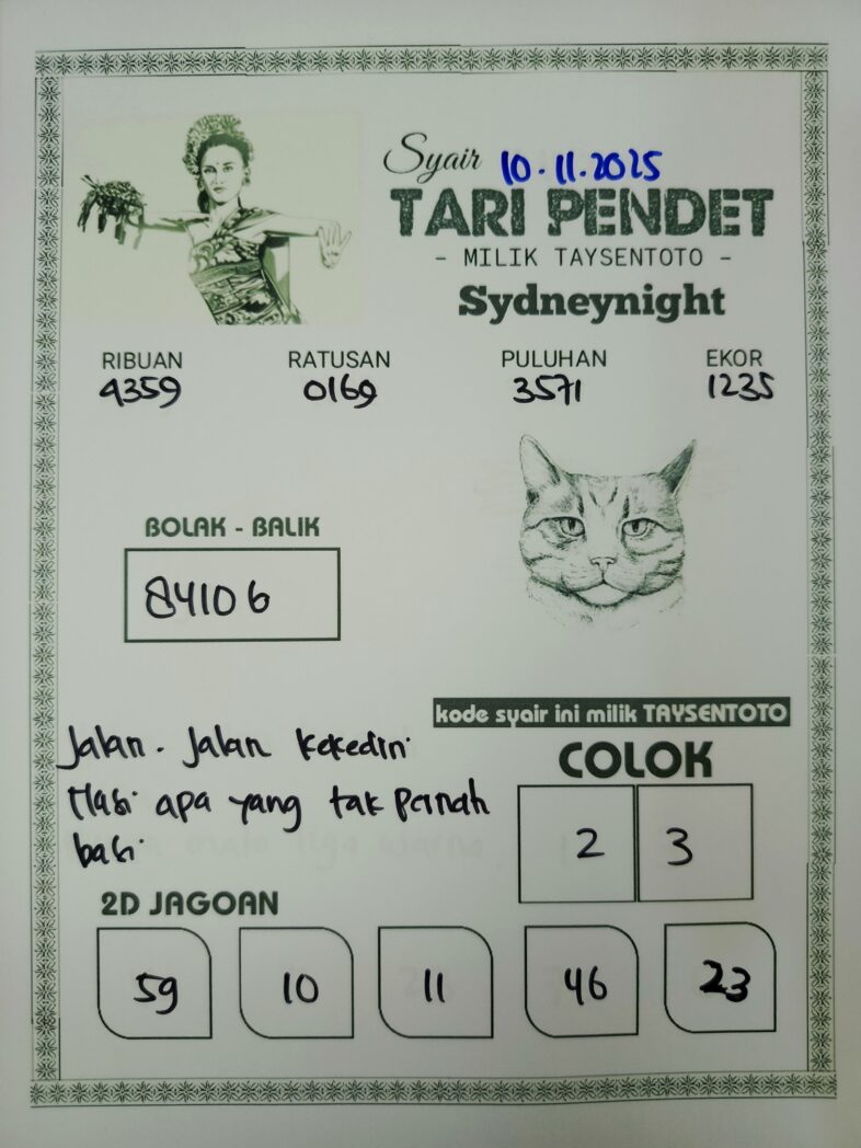 Syair Tari Pendet SydneyNight Hari ini Senin, 10 November 2025