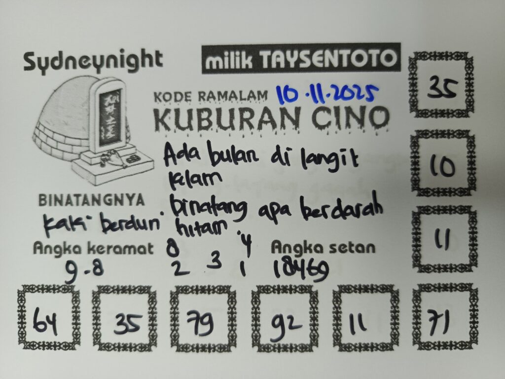 Syair Kuburan Cino SydneyNight Hari ini Senin, 10 November 2025