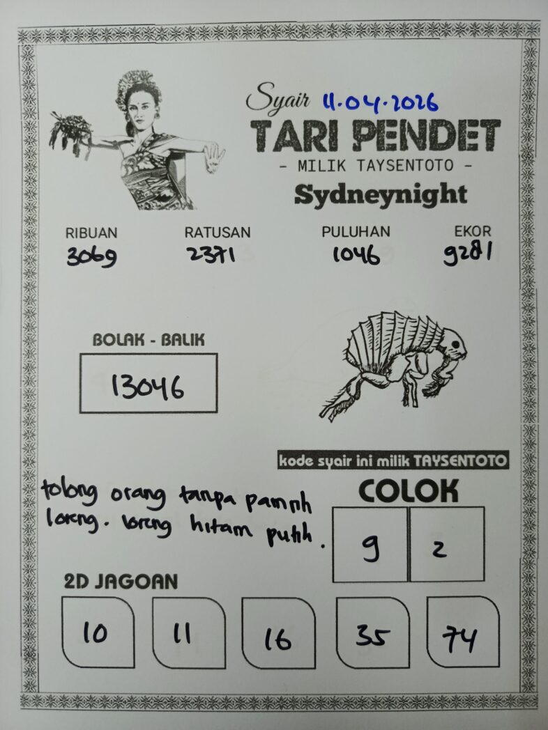 Syair Tari Pendet SydneyNight Hari ini Sabtu, 11 April 2026