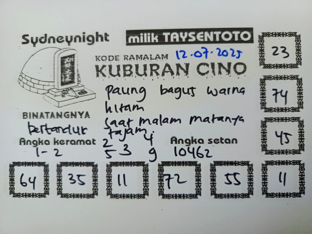 Syair Kuburan Cino SydneyNight Hari ini Sabtu, 12 Juli 2025