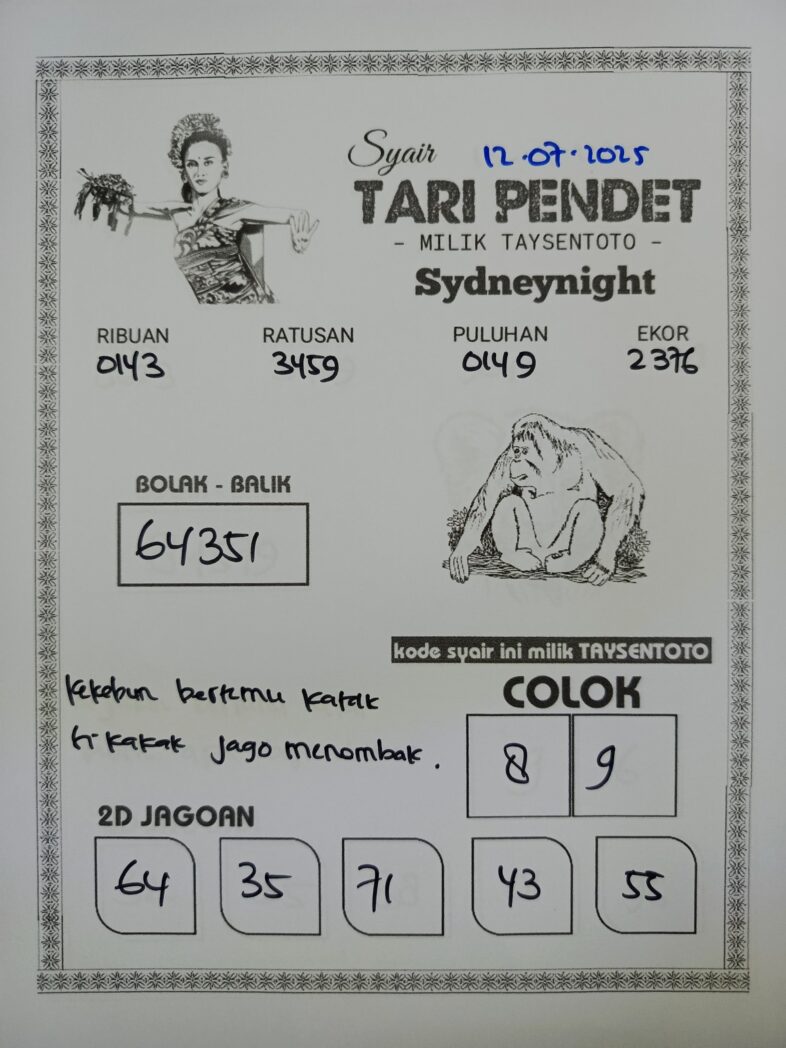Syair Tari Pendet SydneyNight Hari ini Sabtu, 12 Juli 2025