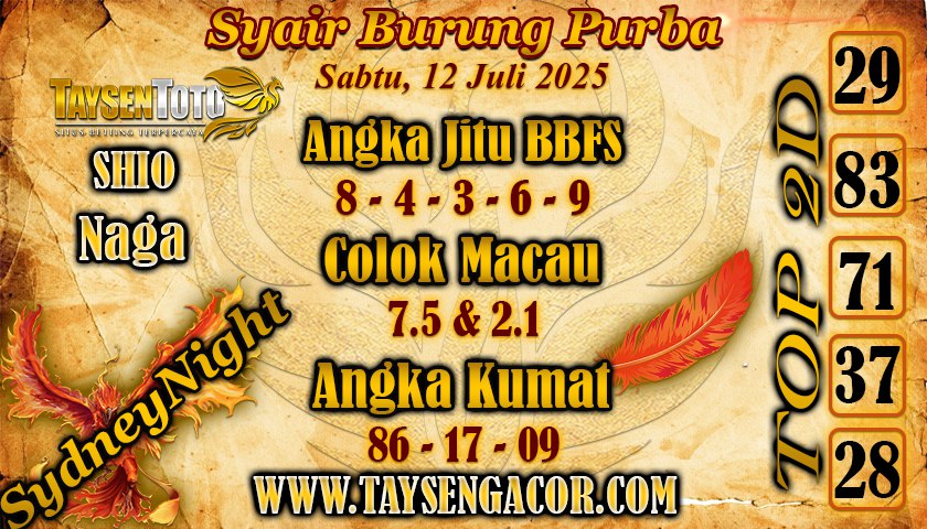Syair Burung Purba SydneyNight Hari ini Sabtu, 12 Juli 2025