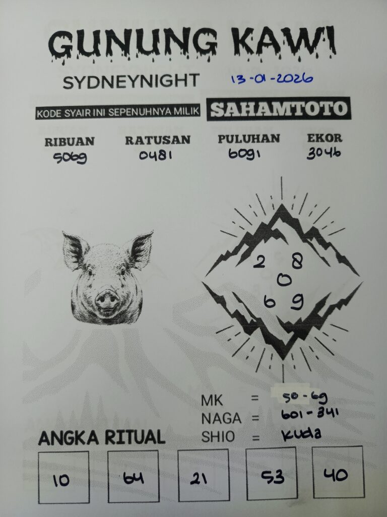 Syair Gunung Kawi Sydney Night Hari ini Selasa 13 Januari 2026