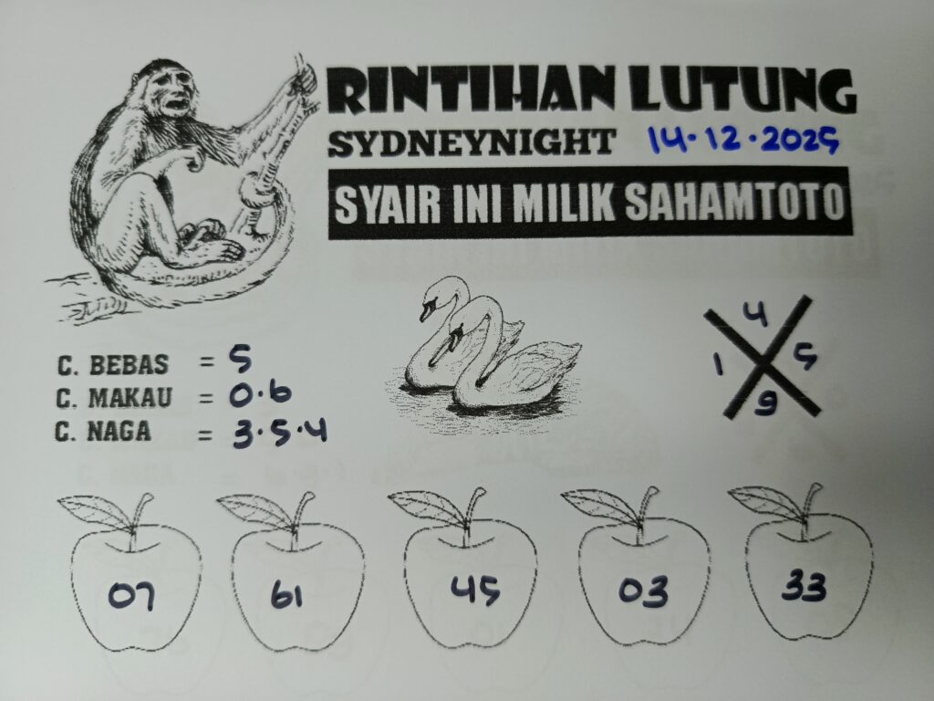 Syair Rintihan Lutung Sydney Night Hari ini Minggu 14 Desember 2025