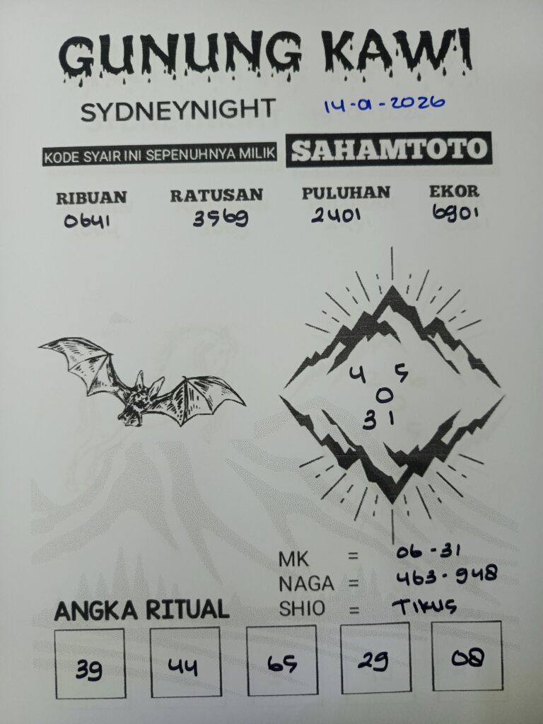 Syair Gunung Kawi Sydney Night Hari ini Rabu 14 Januari 2026