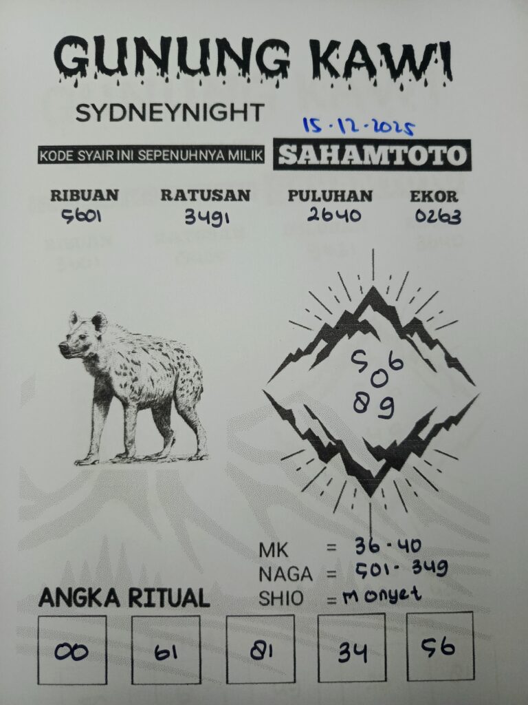 Syair Gunung Kawi Sydney Night Hari ini Minggu 14 Desember 2025