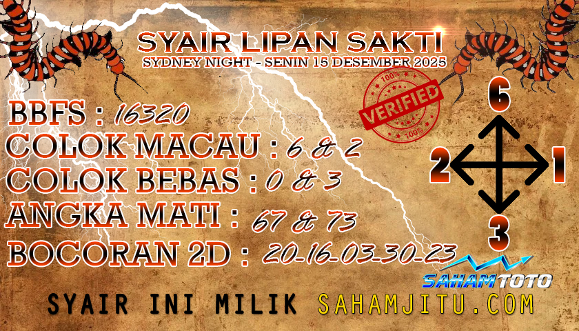 Syair lipan sakti Sydney Night Hari ini Minggu 14 Desember 2025