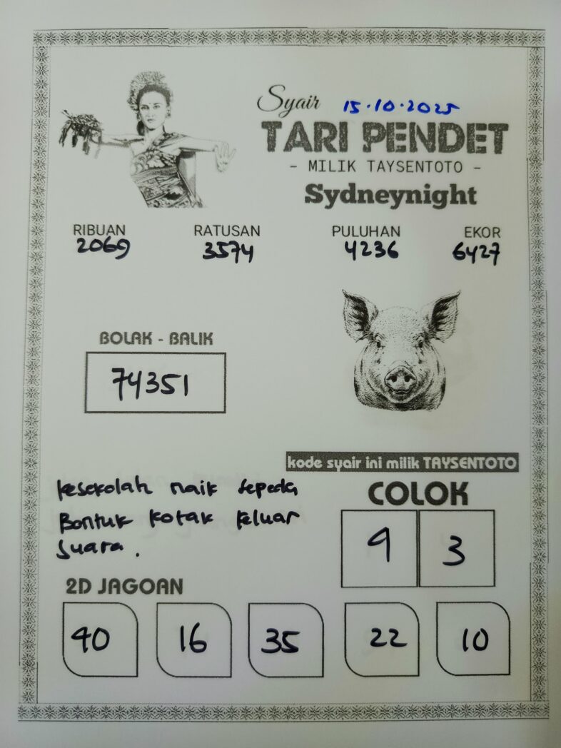Syair Tari Pendet SydneyNight Hari ini Rabu, 15 Oktober 2025