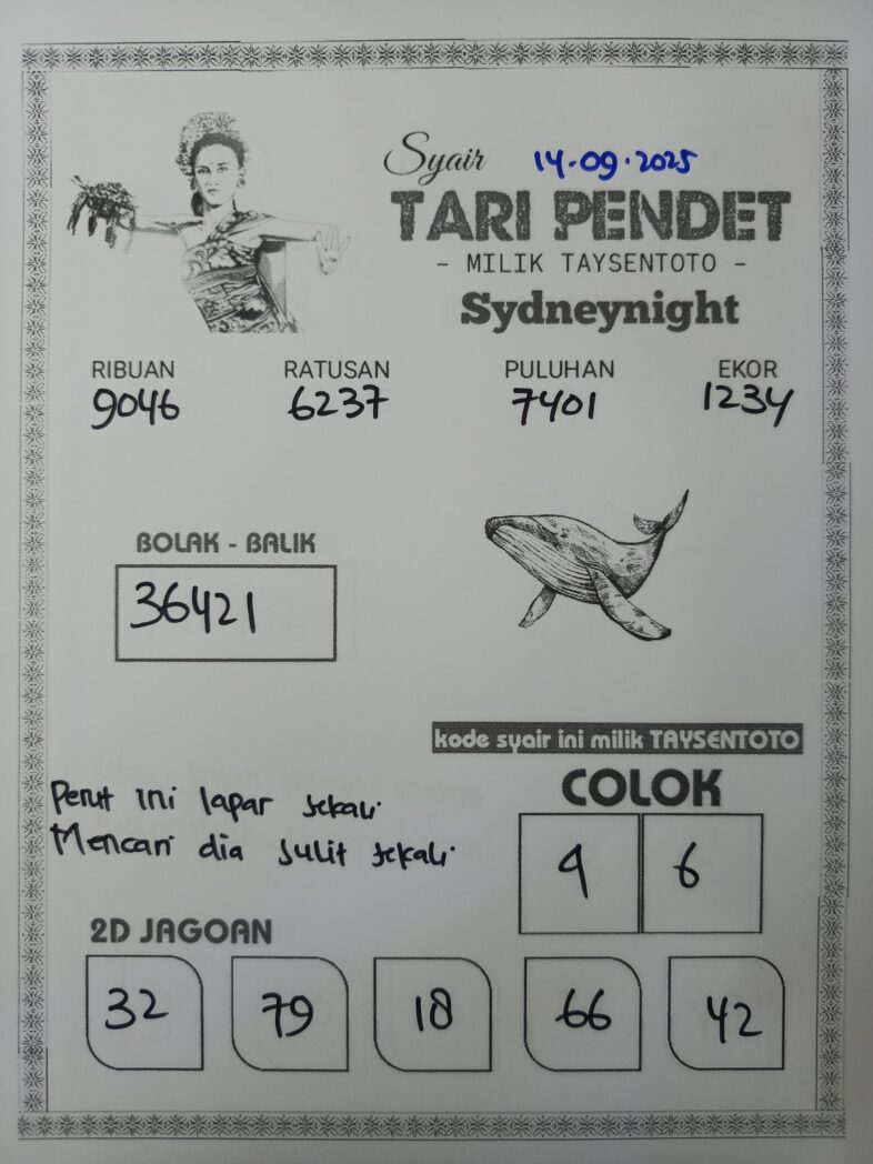 Syair Tari Pendet SydneyNight Hari ini Senin, 15 September 2025