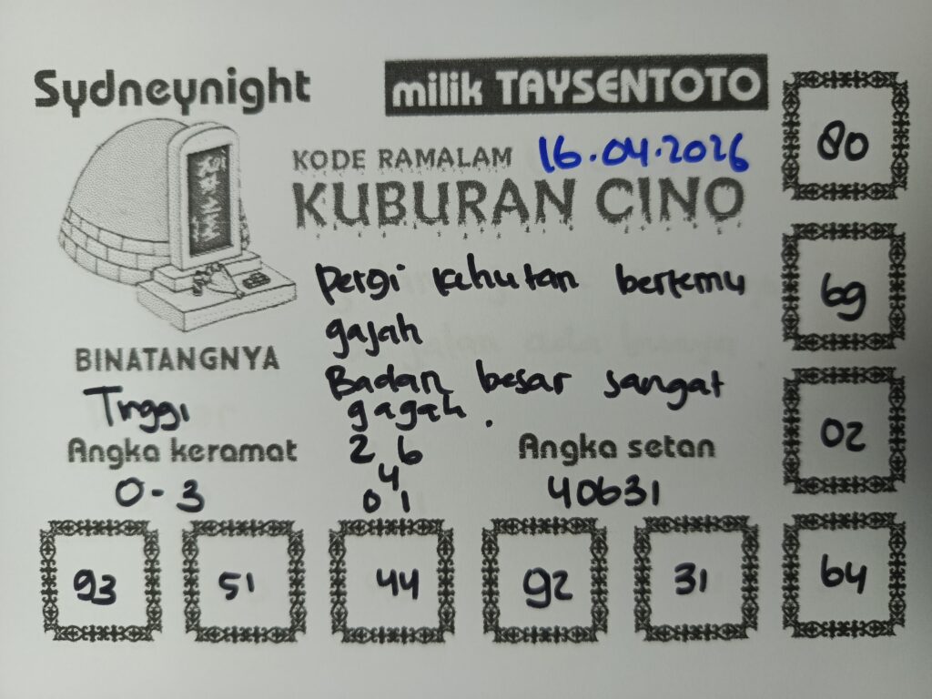 Syair Kuburan Cino SydneyNight Hari ini Kamis, 16 April 2026