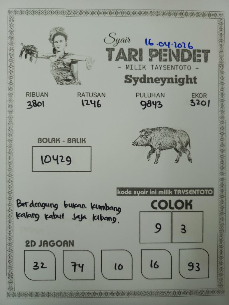 Syair Tari Pendet SydneyNight Hari ini Kamis, 16 April 2026