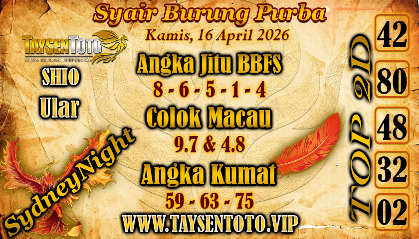 Syair Burung Purba SydneyNight Hari ini Kamis, 16 April 2026