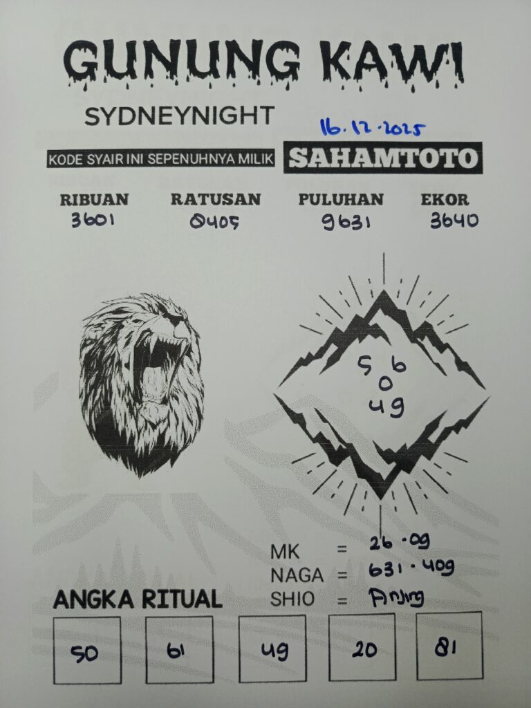 Syair Kuburan Cino SydneyNight Hari ini Selasa, 16 Desember 2025