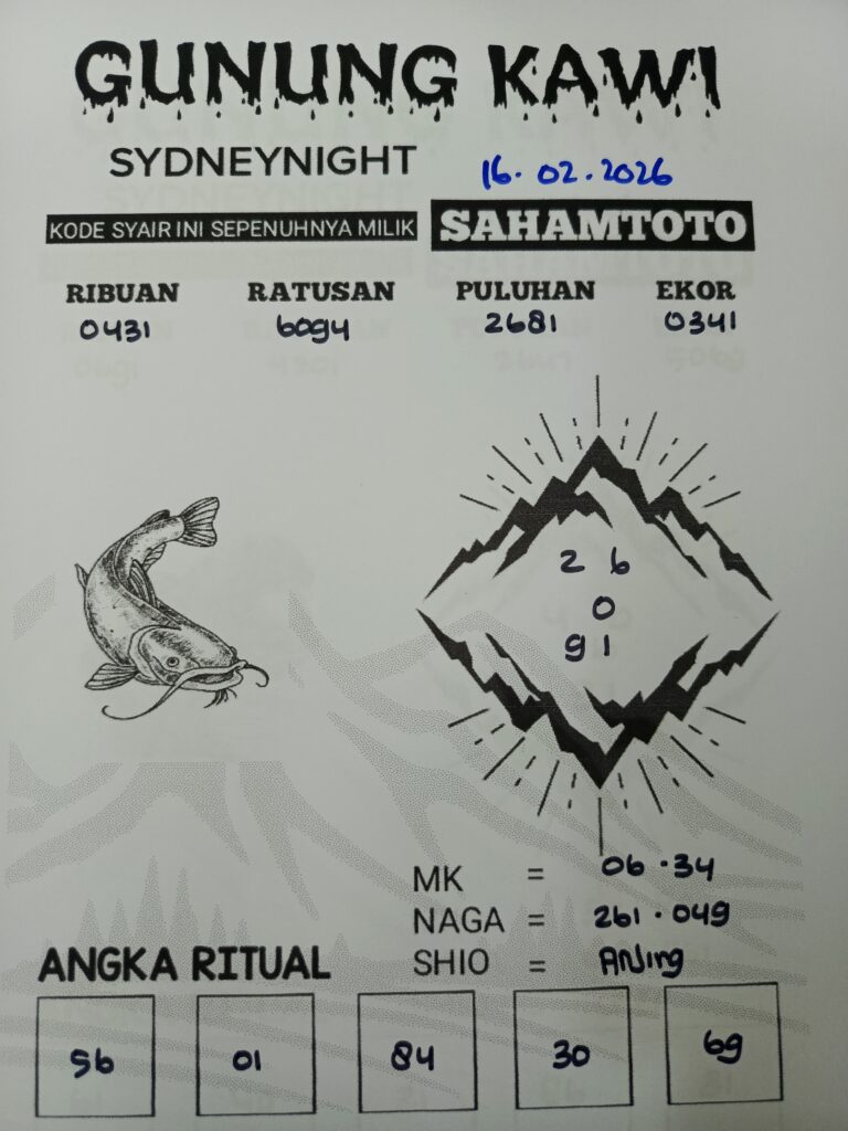Syair gunung kawi Sydney Night Hari ini Senin 16 Februari 2026